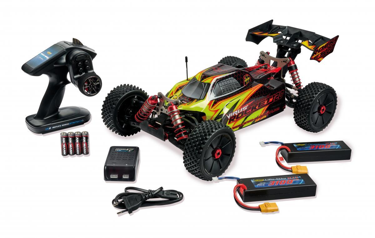 Whoever is interested in remote-controlled vehicles as a beginner is well advised with a complete package (RTR), which contains all accessories necessary for immediate operation.